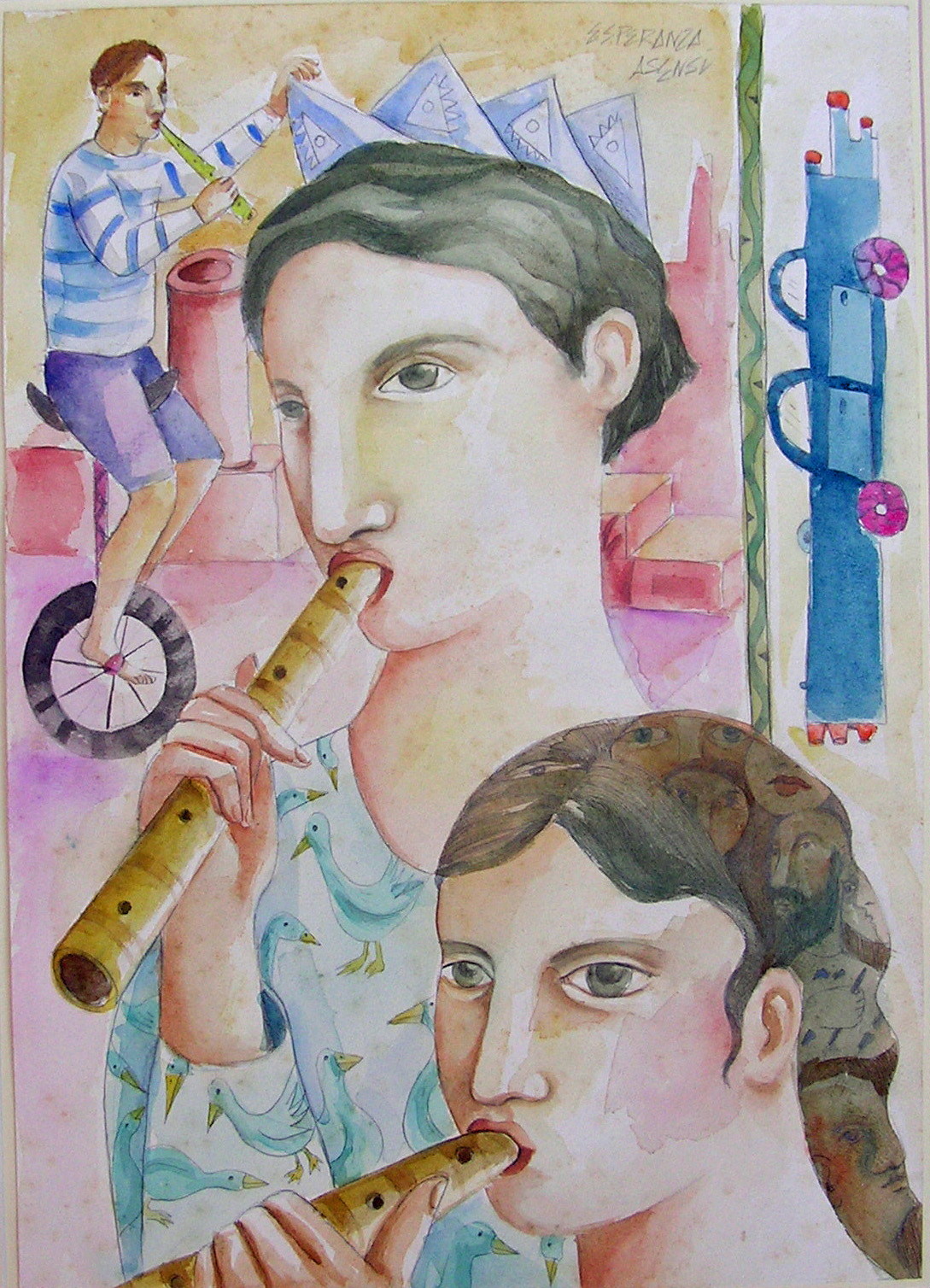 Argos, perro de Ulises, comedor de serpientes. Técnica: Mixta.